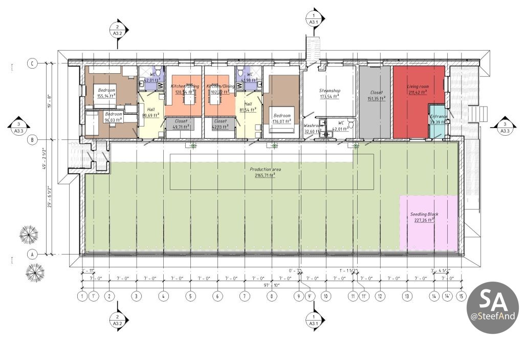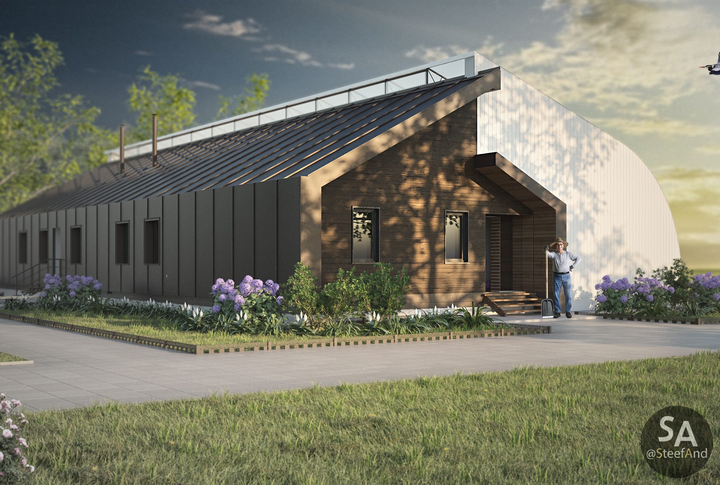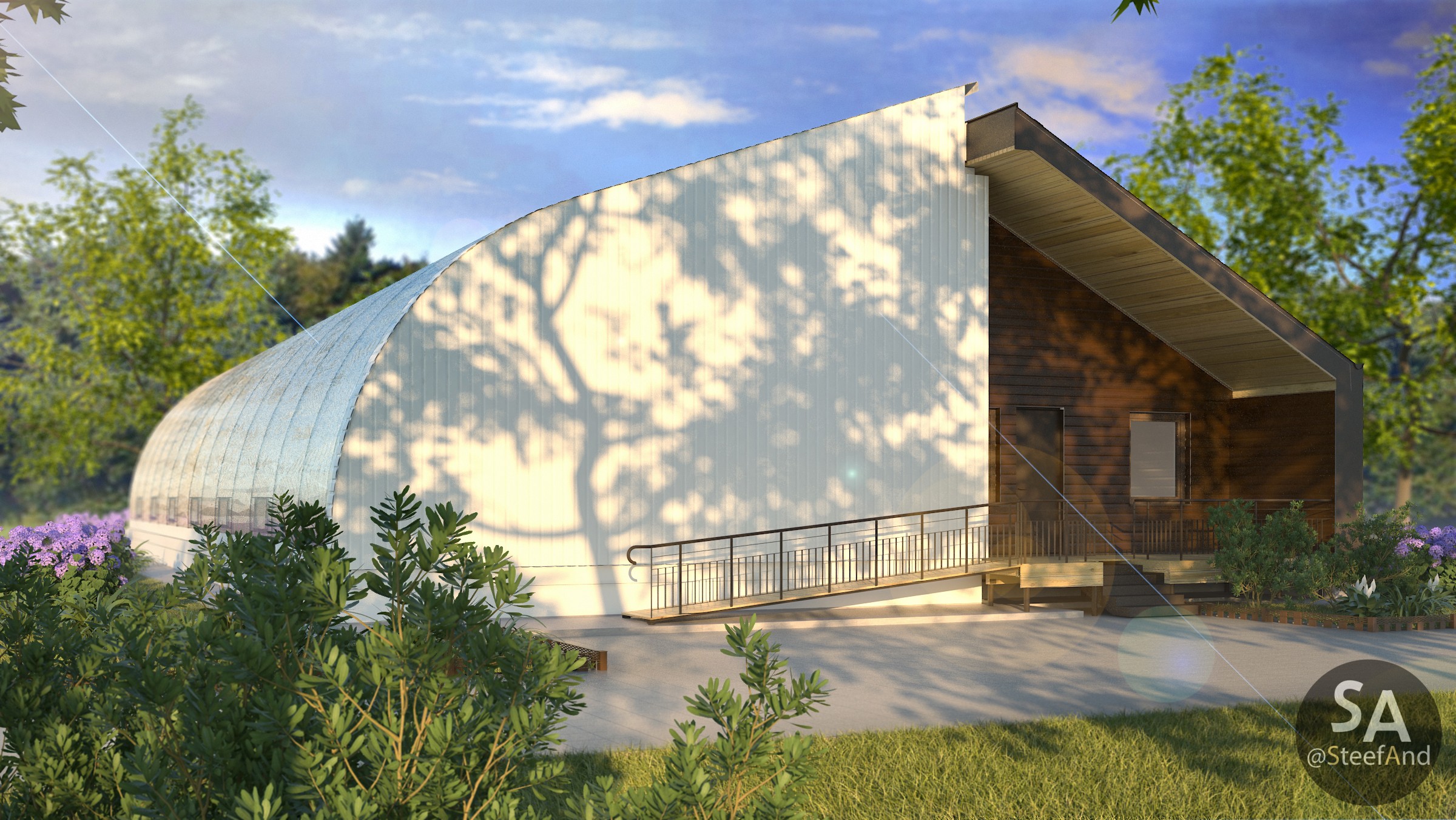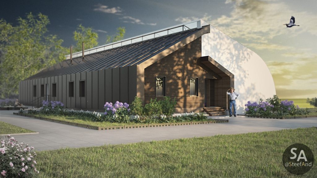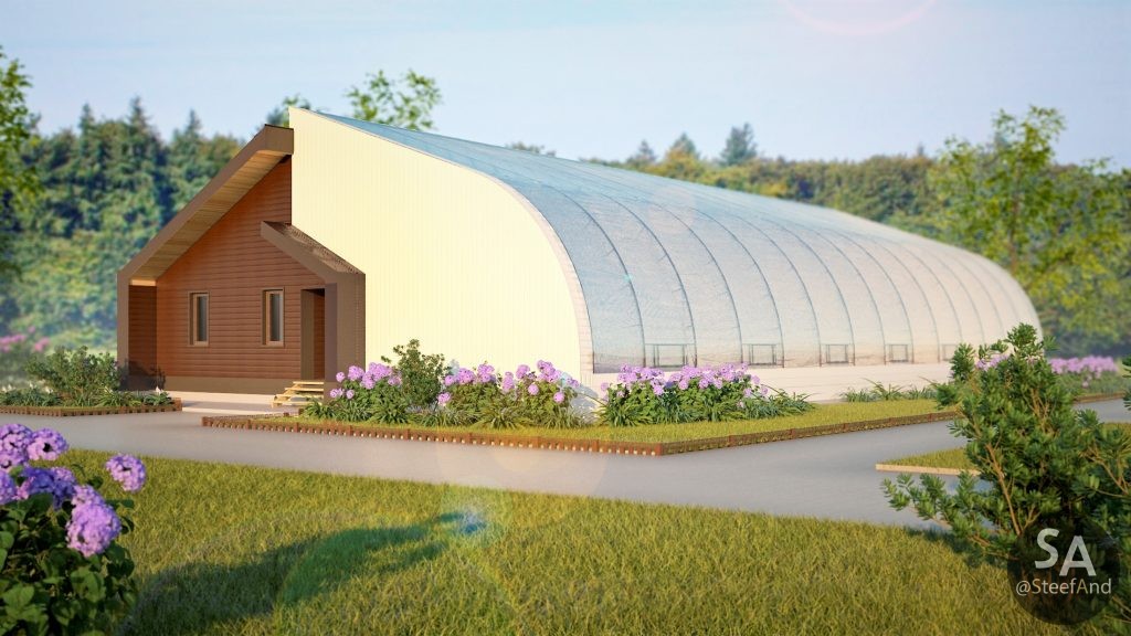 Vegetarium – is an energy efficient greenhouse which allows to grow plants with small amount of electricity even during decently cold winter without using fossil fuel. South side of it absorbs sun heat, underground heat storages – accumulate it for night.